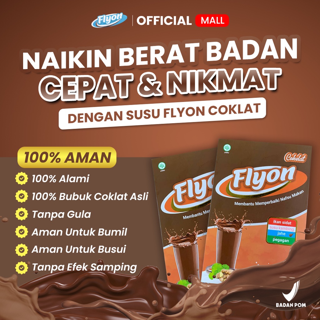 Susu Flyon COKLAT Susu Penggemuk Badan Dan Penambah Nafsu Makan Original Vitamin Penggemuk Badan Herbal